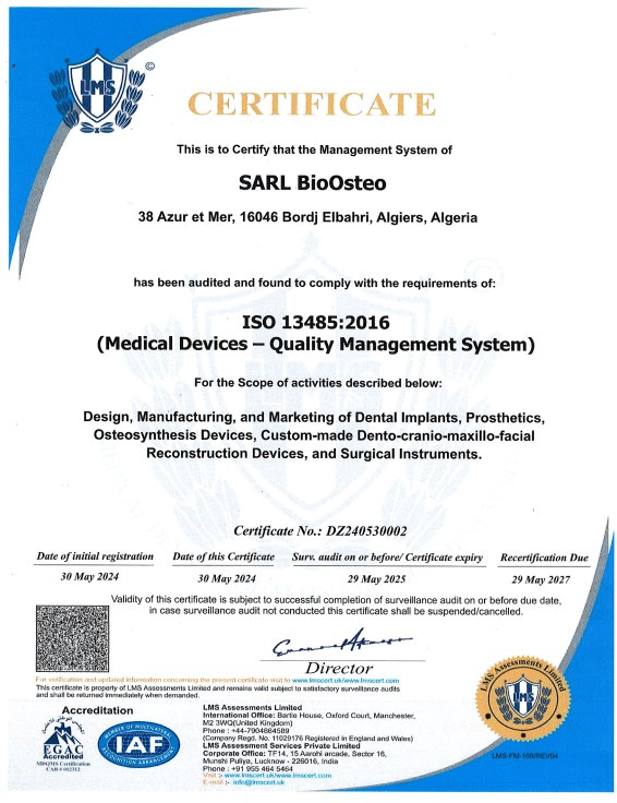 Notre certification ISO 13485 témoigne de la robustesse de notre système de management de la qualité dédié aux dispositifs médicaux.